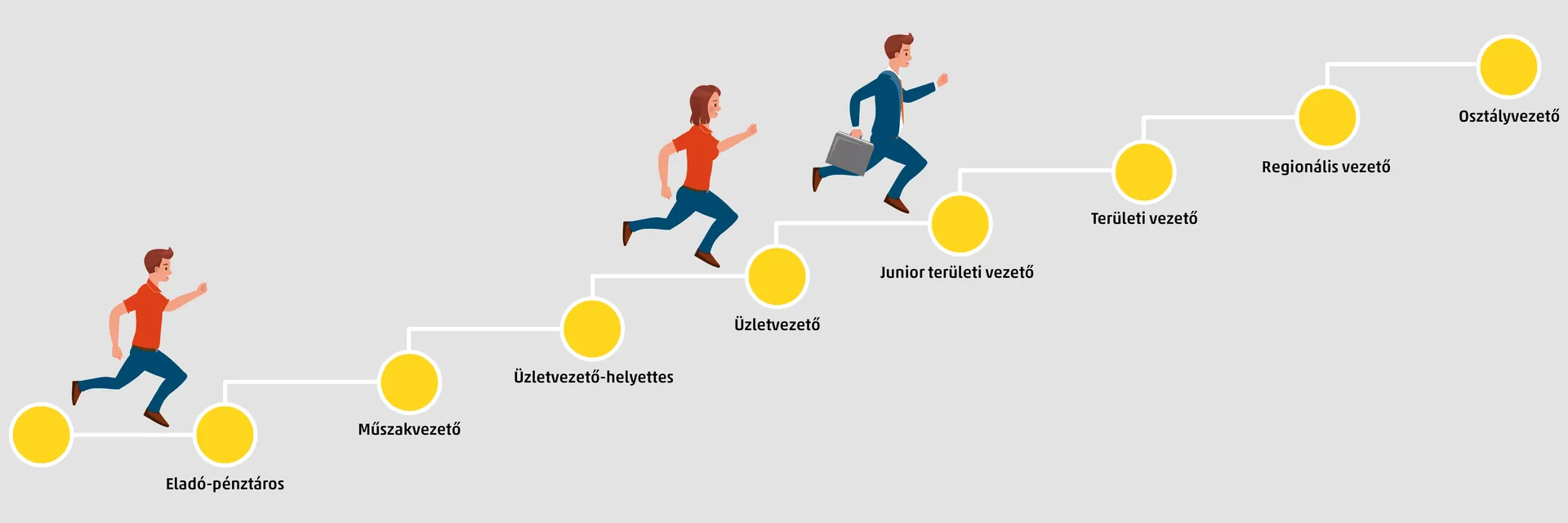 A PENNY-nél elkötelezettek vagyunk munkatársaink fejlődésének támogatásában. Szeretnénk, ha teljes mértékben ki tudnák használni lehetőségeiket és ehhez kínálunk vonzó karrierlehetőségeket az üzleti munkatárstól a területvezetőig. Ahelyett, hogy ragaszkodnánk a formális képzésekhez, a teljesítményük alapján nevezzük ki és speciális képzésekkel készítjük fel a szerepükre kollégáinkat.